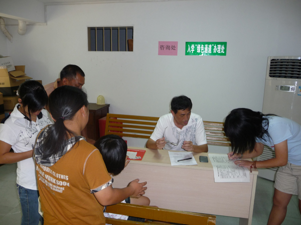 我系將報到處設(shè)于7號樓學(xué)生會議室,將繳費處設(shè)于7號樓輔導(dǎo)員辦公室,并張貼新生名單、入學(xué)須知、報到流程圖、“綠色通道”制度等,為新生及家長提供方便快捷的服務(wù)。