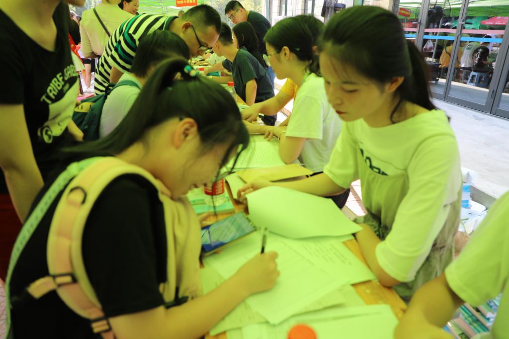 在新生報(bào)到處,工作人員熱情地為新生們辦理各項(xiàng)入學(xué)手續(xù),耐心解答學(xué)生和家長(zhǎng)的問(wèn)題。前來(lái)報(bào)到的新生仔細(xì)詢問(wèn)入學(xué)的注意事項(xiàng),對(duì)即將展開的大學(xué)生活充滿了好奇。在學(xué)院D樓門口、1號(hào)樓前均有我系兩委會(huì)及志愿者忙碌的身影,他們給新生們帶路、拎行李、找宿舍,把自己的熱情傳遞給每一位新生。