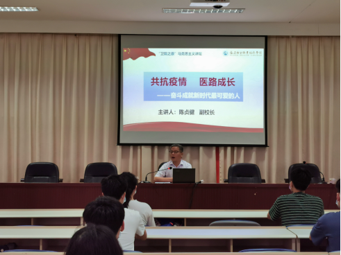 為了教育學(xué)生涵養(yǎng)愛國主義情懷,幫助學(xué)生掌握疫情防控知識、增強疫情防控意識、提高疫情防控能力,引導(dǎo)學(xué)生關(guān)注自身心理健康、保持昂揚的精神面貌,堅定戰(zhàn)勝疫情的信心。2020年7月2日,陳貞健副院長以《共抗疫情 ,醫(yī)路成長——奮斗成就新時代最可愛的人》為題,采用“線上+線下”相結(jié)合的形式為醫(yī)學(xué)技術(shù)系返校復(fù)學(xué)學(xué)生講授思政戰(zhàn)“疫”第一課。醫(yī)學(xué)技術(shù)系邱滾忠副書記主持本次授課活動。