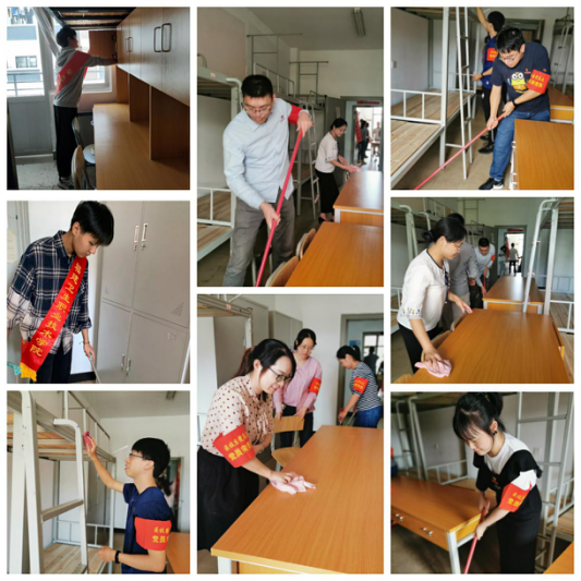 10月8日,醫(yī)學(xué)技術(shù)系組織全體黨員老師、入黨積極分子學(xué)生、團(tuán)學(xué)干部開展新生宿舍的打掃工作,大家以飽滿的熱情投入工作,認(rèn)真檢查每個宿舍的燈、桌椅等硬件設(shè)施的好壞情況,用抹布、拖把等打掃工具將分配到的一間間宿舍全面細(xì)致的打掃。用雙手為新生創(chuàng)造出舒適整潔的住宿環(huán)境,做到每一個角落光潔如新,纖塵不染,確保新生滿意的入住到宿舍中,增強(qiáng)新生的認(rèn)同感和歸屬感。
