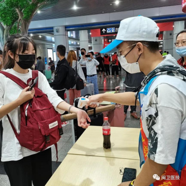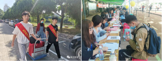 迎新工作如火如荼,到處都是忙碌的身影。一入校門就有為新生測(cè)溫、核驗(yàn)身份、掃碼注冊(cè)、發(fā)放物品的老師。還有我系志愿者舉著“醫(yī)學(xué)技術(shù)系”牌子等待著他們,為他們指引方向。熱情的保安叔叔開著托運(yùn)車為新生們托運(yùn)行李。大家都時(shí)刻準(zhǔn)備在第一時(shí)間為新生們提供幫助。在炎炎烈日下,汗流浹背亦無(wú)暇顧及,每來一位新生,大家都爭(zhēng)先恐后地前去幫忙,不知疲憊。