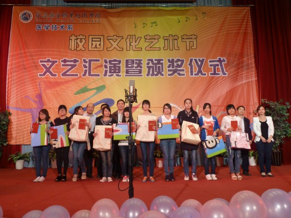 一場(chǎng)簡(jiǎn)短而熱烈的文化藝術(shù)節(jié)系列活動(dòng)頒獎(jiǎng)典禮拉開(kāi)了本次晚會(huì)的帷幕。首先由醫(yī)學(xué)技術(shù)系郭禮堅(jiān)副書(shū)記宣讀表彰決定;接著,馬少寧主任、江真君經(jīng)理相繼講話(huà);最后,黃開(kāi)良副院長(zhǎng)進(jìn)行講話(huà),對(duì)同學(xué)們給予肯定,并提出殷切希望。頒獎(jiǎng)典禮在喜悅、和諧的氣氛中閉幕。