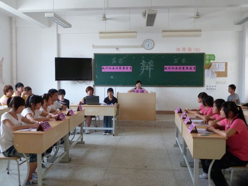 醫(yī)學(xué)技術(shù)系第四屆大專生辯論賽半決賽的兩場(chǎng)賽事分別于5月10日、11日下午5點(diǎn)30分在教學(xué)樓205教室激烈開辯。本次比賽采用國(guó)際大專生辯論賽賽制,增設(shè)了攻辯階段,使整場(chǎng)比賽更具看點(diǎn)。第一場(chǎng)辯論題目:現(xiàn)代社會(huì)更需要通才還是專才?對(duì)陣的正反方分別為10檢驗(yàn)301和10影像301(一隊(duì))代表隊(duì)。第二場(chǎng)辯論題目:大學(xué)生寬松管理利大于弊還是弊大于利?正反方分別為10影像301(二隊(duì))和09檢驗(yàn)301代表隊(duì)。
