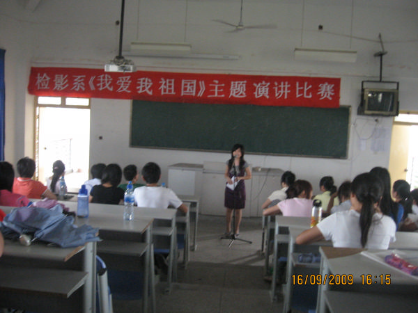 為慶祝中華人民共和國成立60周年,同樣也為了增加學生的愛國情操,增強他們的愛國意識,檢驗影像系于2009年9月17日在系部第二階梯教室舉行“我愛我的祖國”演講比賽。