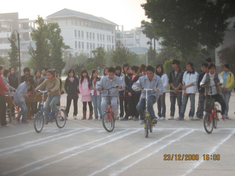 為更好地宣傳“我運動,我健康;我快樂,我陽光。”這一主題,醫(yī)學(xué)技術(shù)系于2009年12月24日在第一食堂門口舉行首屆自行車大賽。