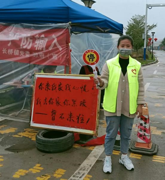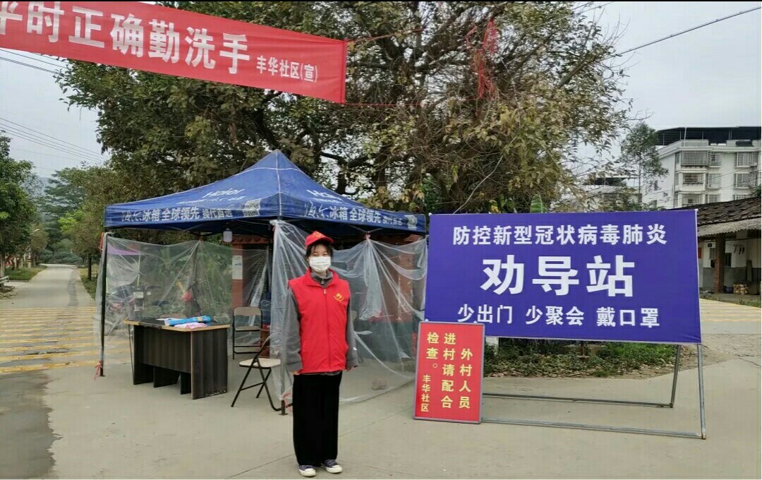 19影像304班林文娣同學(xué)在福建省龍巖市連城縣莒溪鎮(zhèn)壁洲村做志愿工作,她的任務(wù)是登記往來車輛并為其車輛里的人員測量體溫,阻止外村人進(jìn)村。她說:“作為一名醫(yī)學(xué)生,我雖不能到一線去沖鋒陷陣,但我會(huì)盡我所能去加強(qiáng)村民們的安全意識(shí),會(huì)承擔(dān)起對(duì)社會(huì)的責(zé)任。中國加油,武漢加油。待到春暖花開時(shí),我們?cè)傧嗉s武漢賞櫻花。”