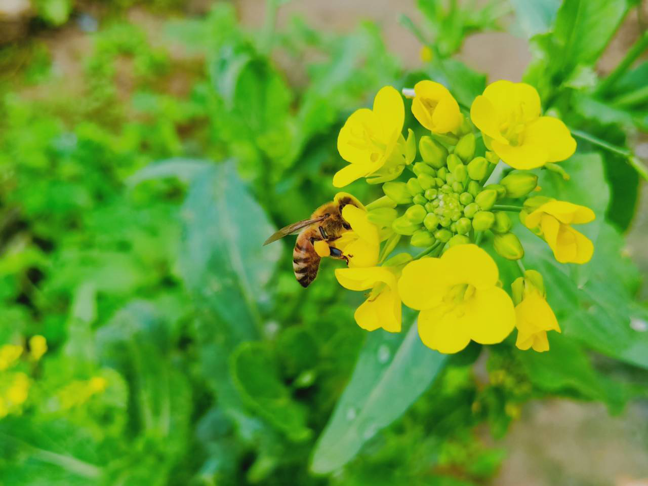 油菜花的外貌極是平凡。它們沒有月季、玫瑰、牡丹那樣層層疊疊的花瓣與多變的姿態(tài),奇異的色彩。我喜歡它的樸素、自然、純潔與高尚。滿坡滿野的金黃,那是它們的熱烈在那片豐茂的綠葉中閃爍。在清明前后這樣一個(gè)溫暖馨香的季節(jié)里,是老鼠嫁女的好日子。