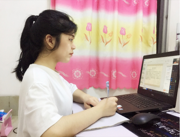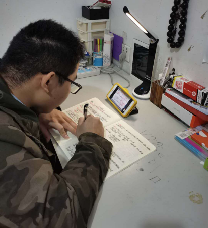 鐘曉娜同學(xué)說:“在疫情如此嚴(yán)重的情況下也阻止不了我們學(xué)習(xí)的腳步。最近3個(gè)多月,由于疫情的原因,我們宅家學(xué)習(xí)。上網(wǎng)課就是通過軟件在家直播。一臺電腦,一部手機(jī),一個(gè)筆記本,一支筆,懷著一顆求學(xué)的心開始學(xué)習(xí)。網(wǎng)課比起平常在學(xué)校學(xué)習(xí)需要更多自律,許多事情都需要靠自己自覺完成。希望在這次網(wǎng)課中,我們不僅能夠?qū)W到新知識,還能做到自律,養(yǎng)成良好的學(xué)習(xí)習(xí)慣。”