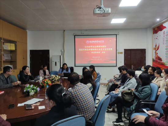 12月2日周四下午利用系部例會(huì),組織開展一次集體學(xué)習(xí)憲法專題活動(dòng),并積極組織廣大教職工深入學(xué)習(xí)憲法法律,弘揚(yáng)憲法精神,讓法治精神和愛國主義精神在教職工心中牢牢扎根。