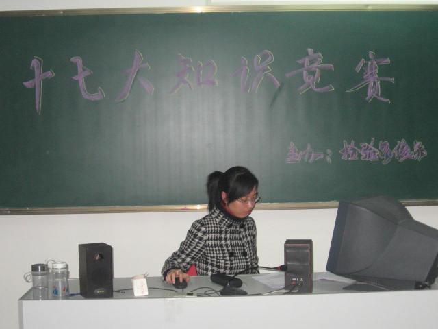 2007年12月4日下午,檢驗(yàn)影像系在教學(xué)樓四個(gè)機(jī)房?jī)?nèi)舉行了“十七大知識(shí)競(jìng)賽”, 以選擇題和判斷題的形式讓同學(xué)們?cè)谟?jì)算機(jī)上做答。