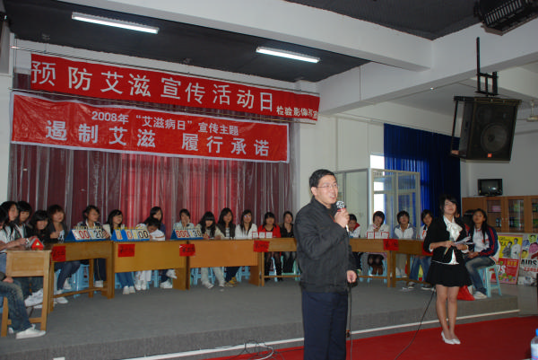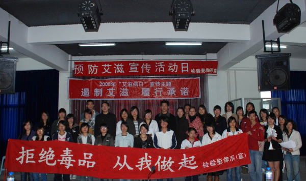 檢驗(yàn)影像系文藝部以主題“遏制艾滋,履行承諾”,于2008年12月2日下午2點(diǎn),在學(xué)生活動(dòng)中心三樓舉辦了一場(chǎng)艾滋病知識(shí)競(jìng)答活動(dòng)。參加此次活動(dòng)的嘉賓有:來自閩侯防疫站的工作人員和本系的老師。參賽選手分別由:護(hù)理系、藥學(xué)系、臨床醫(yī)學(xué)系、檢驗(yàn)影像系組成8個(gè)小組。