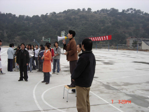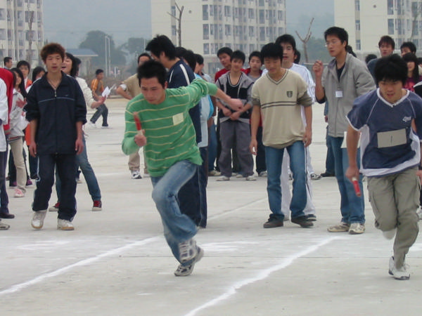 2006年3月7日下午體育部在運(yùn)動場上舉行了往返接力賽,每班派男、女各一隊(duì)運(yùn)動員參加。同學(xué)們在運(yùn)動場上積極參與,啦啦隊(duì)在運(yùn)動場邊高喊加油,氣氛異常熱烈。最后決出了一等獎一名,二等獎二名,三等獎三名。