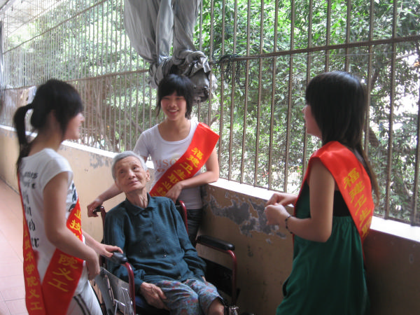 義工們一到敬老院,就向老人們噓寒問暖,了解老人們在這里的生活狀況,耐心地與他們交談。同學們還和老人一起唱歌,歌聲中流露出美好的期望,整個敬老院充滿了歡聲笑語。最后,義工們一起與老人們合影留念,同學們拉著老人的手戀戀不舍地惜別。