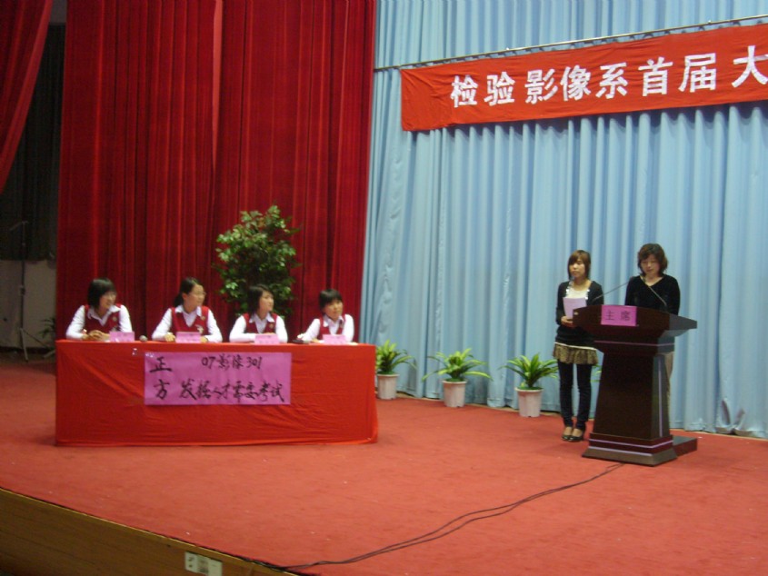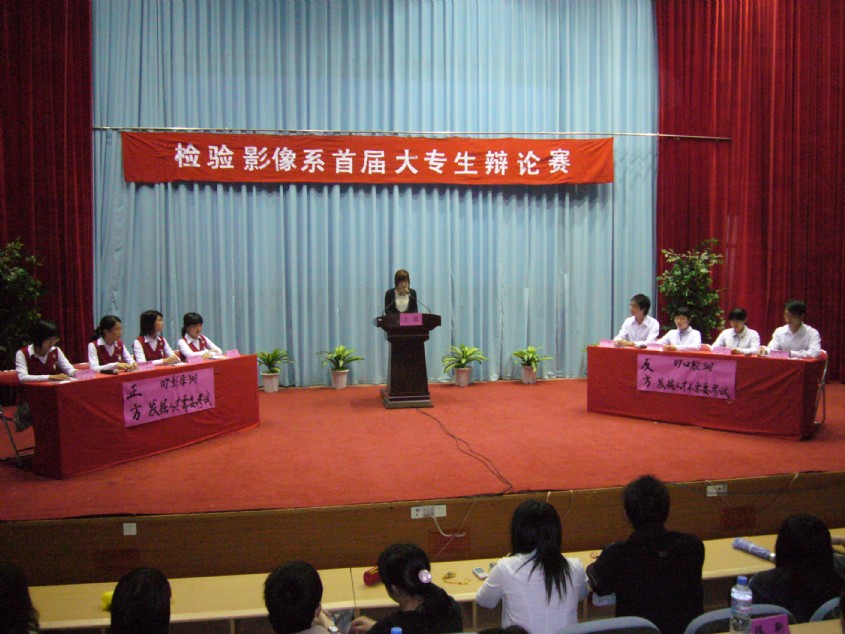此次辯論賽由檢驗影像系學(xué)生會主辦,各班積極組建辯論隊,為辯論賽進行了長期的備戰(zhàn),相繼參加了從3月18日至4月17日近一個月時間里舉行的4場初賽、2場半決賽以及決賽,在同學(xué)中掀起一股辯論旋風(fēng)。辯論賽不僅鍛煉了學(xué)生的思維、辯論的能力,而且將作為具有我系特色的素質(zhì)教育長期開展,同時也為我院迎接人才水平評估營造了良好的氛圍。
