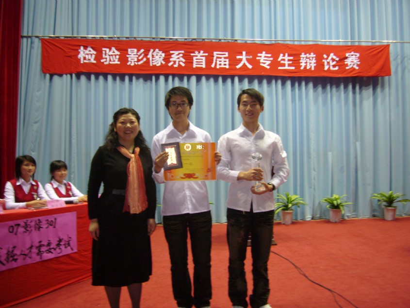 07口腔301班憑借整體實力和扎實的理論功底贏得了這場辯論賽,勇奪桂冠,07影像301班屈居亞軍;07口腔301班一辯林宇同學(xué)獲得總決賽最佳辯手的榮譽稱號。最后由魏立娜副書記為冠軍代表隊和最佳辯手頒獎,至此,檢驗影像系首屆大專生辯論賽精彩謝幕。