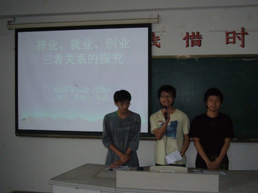 檢驗(yàn)影像系于4月22日下午在系部第二階梯教室舉行題為“擇業(yè) 就業(yè) 創(chuàng)業(yè)”的學(xué)生專題研討會(huì)。出席本次研討會(huì)的有檢驗(yàn)影像系書記洪聿榮老師、公共基礎(chǔ)部書記蘭寶金老師、公共基礎(chǔ)部劉光磊、柯瓊鶯、丁愛芝、張東方、柏美平老師以及各班輔導(dǎo)員,研討會(huì)由07影像301班的吳麗紗主持。