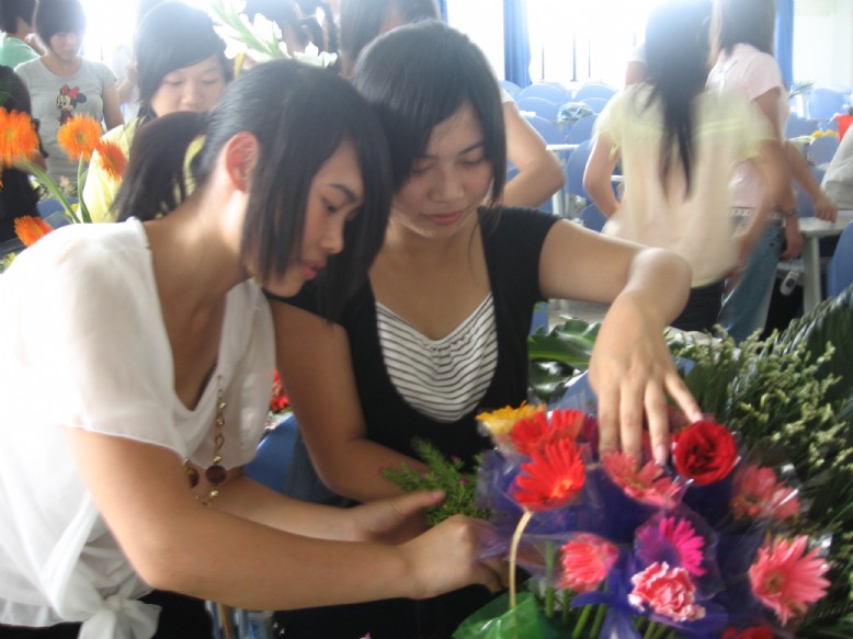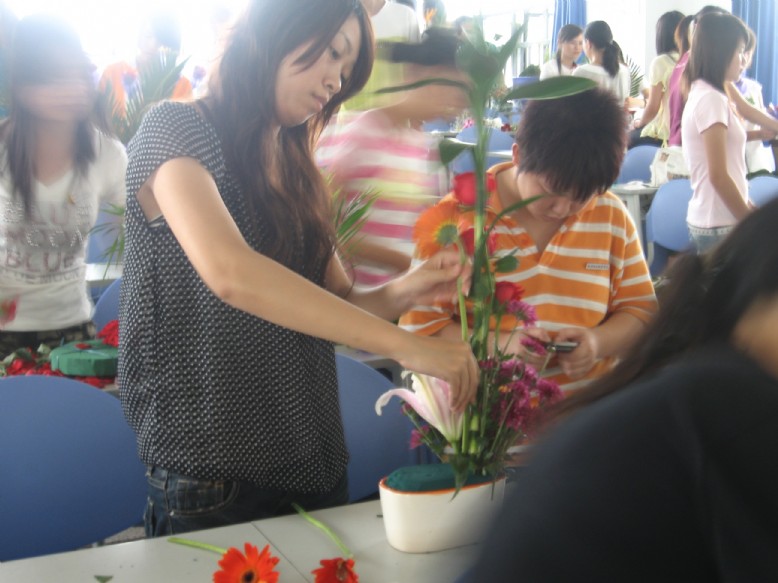 參賽選手多達(dá)60人,共29組?;ɑ苡邪俸?、玫瑰、滿天星、萬年青、龜背竹等二十多種;器皿則有素雅花盆、玻璃花瓶、竹筒、藤籃等。同學(xué)們懷著對(duì)奧運(yùn)會(huì)的期盼、對(duì)四川災(zāi)區(qū)同胞的祝福和把母校建設(shè)成為一流高職高專類院校的決心,充分發(fā)揮自己的想象力,把自己對(duì)生活和美的感悟,通過手中的一枝枝鮮花,淋漓盡致地表達(dá)了出來。