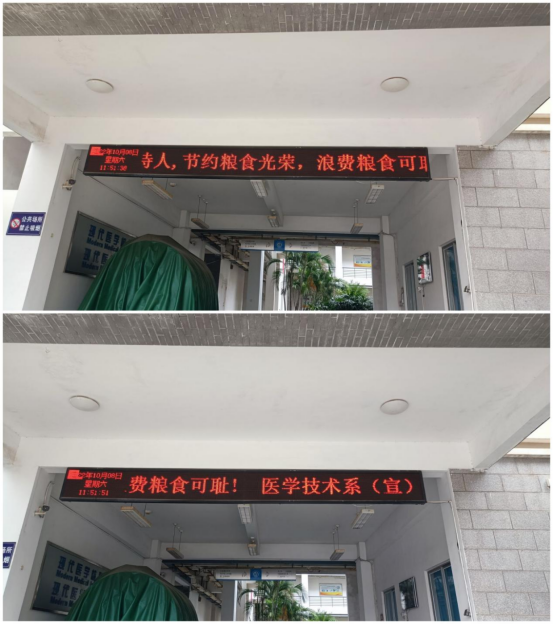 一是多載體營造良好宣傳氛圍。10月8日-10月18日,醫(yī)學技術系組織開展了“2022年世界糧食日和全國糧食安全宣傳周活動”系列活動,利用系部微信公眾號、LED電子顯示屏幕、視頻講解等載體,宣傳糧食安全相關內(nèi)容,普及糧食節(jié)約、營養(yǎng)健康知識,引導全系師生形成愛糧節(jié)糧的良好校園風氣。