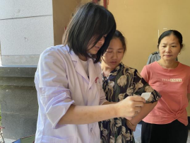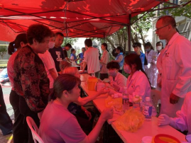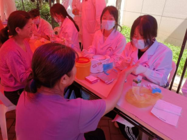 活動現(xiàn)場,醫(yī)學(xué)檢驗(yàn)技術(shù)專業(yè)的師生們通過開展血型鑒定,發(fā)放無償獻(xiàn)血宣傳材料,普及了獻(xiàn)血的相關(guān)知識和無償獻(xiàn)血的重要意義,學(xué)生們在活動中強(qiáng)化了血液學(xué)知識的應(yīng)用,以行動提升對無償獻(xiàn)血的認(rèn)知。師生還為居民進(jìn)行血糖測定和乙肝表面抗原檢測,結(jié)合檢測結(jié)果,普及糖尿病和乙肝預(yù)防知識,養(yǎng)成健康生活習(xí)慣。