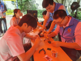 智能醫(yī)療裝備技術(shù)和醫(yī)療設(shè)備應(yīng)用技術(shù)專業(yè)的師生現(xiàn)場對居民送來的故障小電器進(jìn)行檢測和維修,普及了小型家用電器維護(hù)保養(yǎng)與維修的常識和意義,同時(shí)提高學(xué)生利用專業(yè)知識踐行為民服務(wù)的認(rèn)同感,踐行醫(yī)學(xué)生奉獻(xiàn)精神和職教精神。