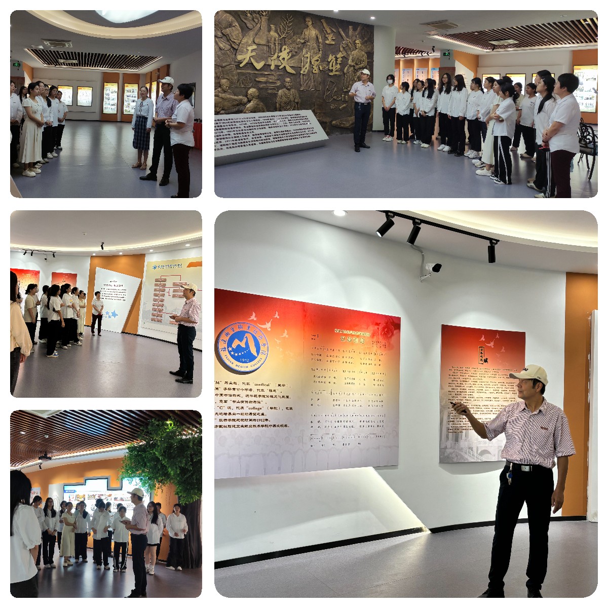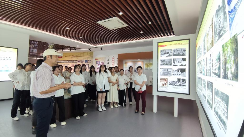 洪常青同志是學(xué)校1979級(jí)醫(yī)學(xué)大專班校友、工會(huì)原專職副主席。在這位老校友亦是老教師的帶領(lǐng)下,同學(xué)們參觀校史館“悠悠歲月,根深源遠(yuǎn)”、“滄桑巨變,崛起八閩”、“立德樹(shù)人,風(fēng)正帆懸”、“守正創(chuàng)新,建設(shè)示范”以及“不忘初心,行穩(wěn)致遠(yuǎn)”五大展區(qū)。通過(guò)一樁樁學(xué)院大事記、一幅幅生動(dòng)的歷史照片,一件件鮮活的歷史實(shí)物,同學(xué)們?nèi)轿涣私鈱W(xué)校辦學(xué)的崢嶸歷程,感受一代代閩衛(wèi)人的接續(xù)奮斗,領(lǐng)略學(xué)校百余年校史的厚重底蘊(yùn)。