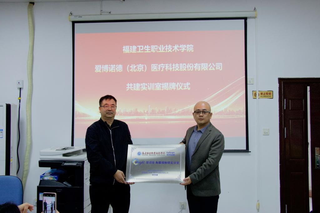校企雙方舉行了共建“角膜接觸鏡實(shí)訓(xùn)室”揭牌儀式、捐贈(zèng)儀式及兼職教師聘任儀式。愛博醫(yī)療現(xiàn)場向我校捐贈(zèng)普諾瞳?角膜塑形鏡鏡片、硬性接觸鏡護(hù)理產(chǎn)品等教學(xué)用具用品。后續(xù),愛博醫(yī)療還將深度參與學(xué)校專業(yè)建設(shè),組織專項(xiàng)培訓(xùn)師資到校授課,并為我校教職工提供培訓(xùn)進(jìn)修機(jī)會(huì)。