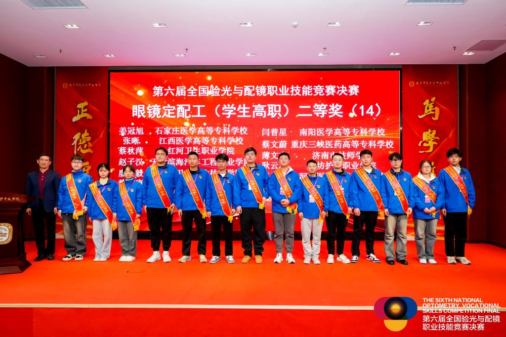 2024年11月25日,第六屆全國驗光與配鏡職業(yè)技能競賽決賽在江蘇丹陽圓滿落幕。本次競賽于11月22日至25日期間舉行,匯聚了來自全國各地45所高職院校的眼視光專業(yè)技能人才,經(jīng)過激烈角逐,我校醫(yī)學技術與工程學院眼視光技術專業(yè)的謝詩婷與廖展毅兩位同學憑借出色的專業(yè)技能和穩(wěn)定的發(fā)揮,分別榮獲驗光(高職組)和定配(高職組)的二等獎。