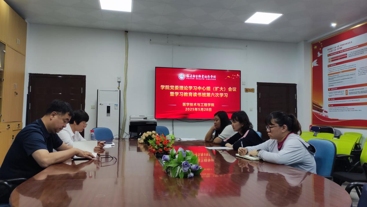 5月28日,醫(yī)學技術(shù)與工程學院舉行黨委理論學習中心組(擴大)會議暨深入貫徹中央八項規(guī)定精神學習教育讀書班第六次學習,主要跟進學習習近平總書記近期重要講話重要文章重要回信精神,學習中央八項規(guī)定及實施細則的有關(guān)內(nèi)容和精神,傳達學習教育相關(guān)文件精神等。學院黨委書記柯瓊鶯主持會議,院長翁繩和、黨委委員參加學習。