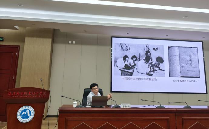 為推進(jìn)黨史學(xué)習(xí)教育走深走實(shí),引導(dǎo)學(xué)院師生從黨的抗戰(zhàn)歷史中感悟初心使命、汲取奮進(jìn)力量,10月23日,醫(yī)學(xué)技術(shù)與工程學(xué)院特邀曹敏華教授,開(kāi)展“中國(guó)共產(chǎn)黨抗戰(zhàn)動(dòng)員的歷史考察與成功經(jīng)驗(yàn)”專(zhuān)題講座。醫(yī)工學(xué)院師生代表、直屬機(jī)關(guān)黨總支組織統(tǒng)戰(zhàn)部黨支部黨員以及農(nóng)工民主黨福建衛(wèi)生職業(yè)技術(shù)學(xué)院支部黨員現(xiàn)場(chǎng)聆聽(tīng)學(xué)習(xí)。