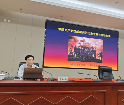 隨后,曹教授圍繞“中國(guó)共產(chǎn)黨抗戰(zhàn)動(dòng)員思想的形成和發(fā)展”,清晰梳理其從萌芽到成熟的演進(jìn)脈絡(luò),使師生對(duì)這一思想體系的發(fā)展歷程與核心要義形成系統(tǒng)性認(rèn)知。