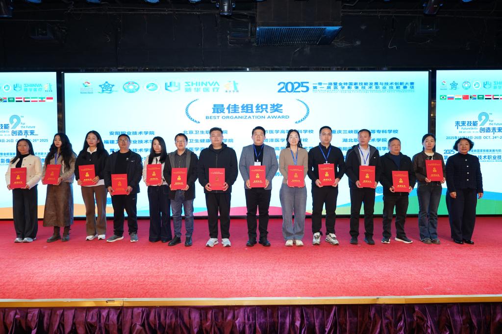10月23日至26日,2025“一帶一路”暨金磚國家技能發(fā)展與技術(shù)創(chuàng)新大賽——醫(yī)學(xué)影像技術(shù)職業(yè)技能賽項決賽在北京衛(wèi)生職業(yè)學(xué)院成功舉辦。本次大賽共有來自全國各地的61支隊伍報名參賽,經(jīng)過激烈的角逐和比拼,我校學(xué)生憑借扎實的專業(yè)技能和出色的現(xiàn)場表現(xiàn),斬獲一等獎1項、二等獎1項、三等獎1項的優(yōu)異成績,并榮獲“最佳組織獎”,充分展示了我校醫(yī)學(xué)影像技術(shù)專業(yè)的人才培養(yǎng)質(zhì)量與教學(xué)實力。
