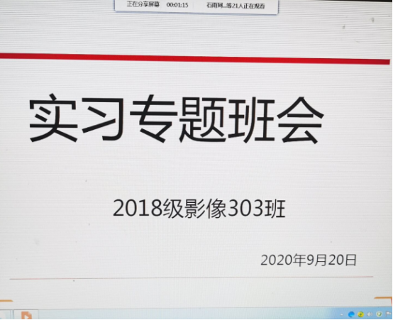 近期專業(yè)教師和輔導(dǎo)員巡點中,發(fā)現(xiàn)個別學(xué)生因個人原因排斥夜班和帶教延遲下班,個別學(xué)生因熬夜而遲到,個別學(xué)生因帶教不在而缺勤。為此,2018級輔導(dǎo)員為實習(xí)生開展專題在線班會,重點強調(diào)實習(xí)紀(jì)律要求。要求學(xué)生遵守醫(yī)院的實習(xí)安排,不遲到不早退,認(rèn)真學(xué)習(xí)理論和實操,主動向帶教求教,珍惜實習(xí)機會。輔導(dǎo)員引導(dǎo)醫(yī)學(xué)生上夜班和白班學(xué)的內(nèi)容是不同的,需珍惜機會;以后工作中也要面臨夜班和遲下班的情形,應(yīng)調(diào)整好學(xué)生自身的情緒,適應(yīng)實習(xí)和工作環(huán)境。