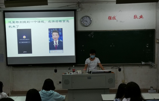 最后,董細敏還呼吁,盡管我國糧食生產(chǎn)連年豐收,但我們老百姓對糧食安全還是始終要有危機意識,今年全球新冠肺炎疫情所帶來的影響,更是給我們敲響了警鐘。她號召在座同學作為當代大學生,應學會在節(jié)約糧食的前提下進行健康的飲食,讓節(jié)約糧食、健康飲食的觀念深入人心!