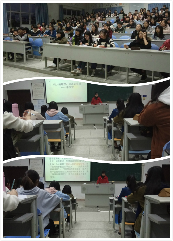 蘇素嬌老師首先為同學(xué)們講解了什么是“中國夢”,并帶領(lǐng)學(xué)員們回顧了實(shí)現(xiàn)中國夢的重要時(shí)代特征與歷史發(fā)展;隨后,蘇素嬌老師以實(shí)現(xiàn)中國夢的“兩個百年”、“兩重任務(wù)”與阻礙中國夢發(fā)展的三大問題作為重點(diǎn)為同學(xué)們進(jìn)行了詳細(xì)分析,同學(xué)們紛紛表示受益良多,為自己制定一個清晰的目標(biāo),在日常生活中要抓好學(xué)習(xí),提高本領(lǐng),為早日實(shí)現(xiàn)中國夢而努力奮斗。