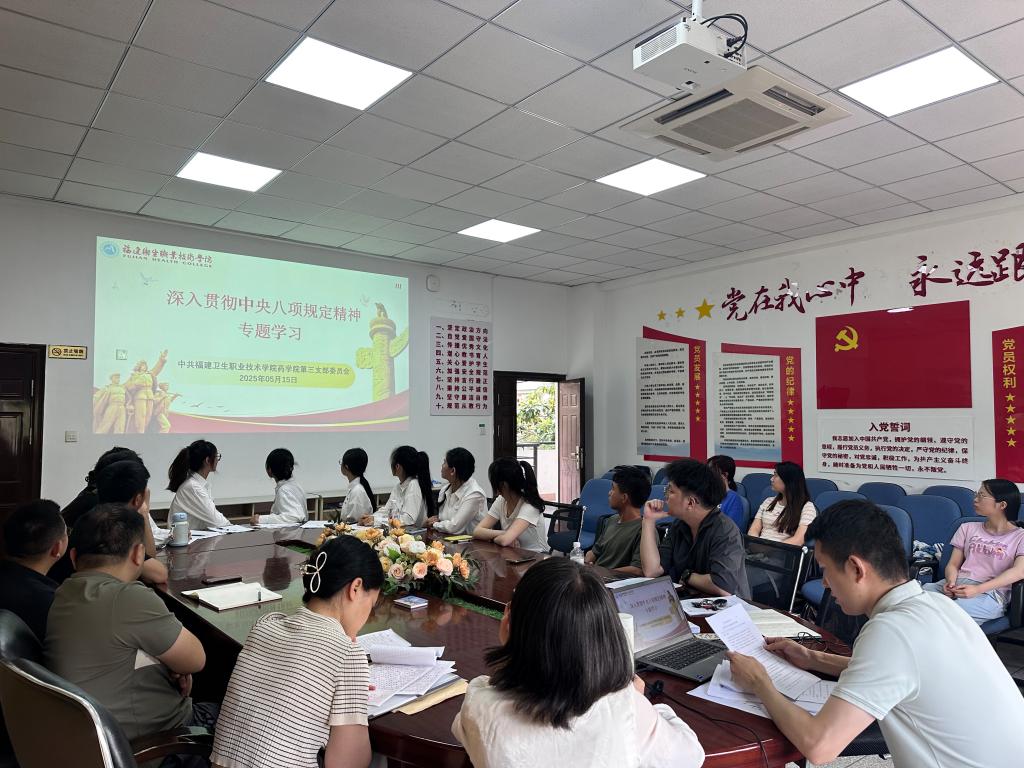 5月15日,藥學(xué)院第三黨支部組織全體黨員開展深入貫徹中央八項規(guī)定精神學(xué)習(xí)教育第二次專題學(xué)習(xí),聚焦中央八項規(guī)定中 “精簡會議活動”“精簡文件簡報”兩條核心內(nèi)容開展專題學(xué)習(xí)與研討,切實推進作風(fēng)建設(shè)常態(tài)化、長效化。