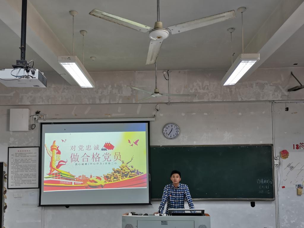 11月6日,藥學(xué)系學(xué)生黨支部書記陳翰老師在藥一階為第二十二期業(yè)余分黨校學(xué)員講授主題為“對(duì)黨忠誠,做合格黨員”的專題講座。