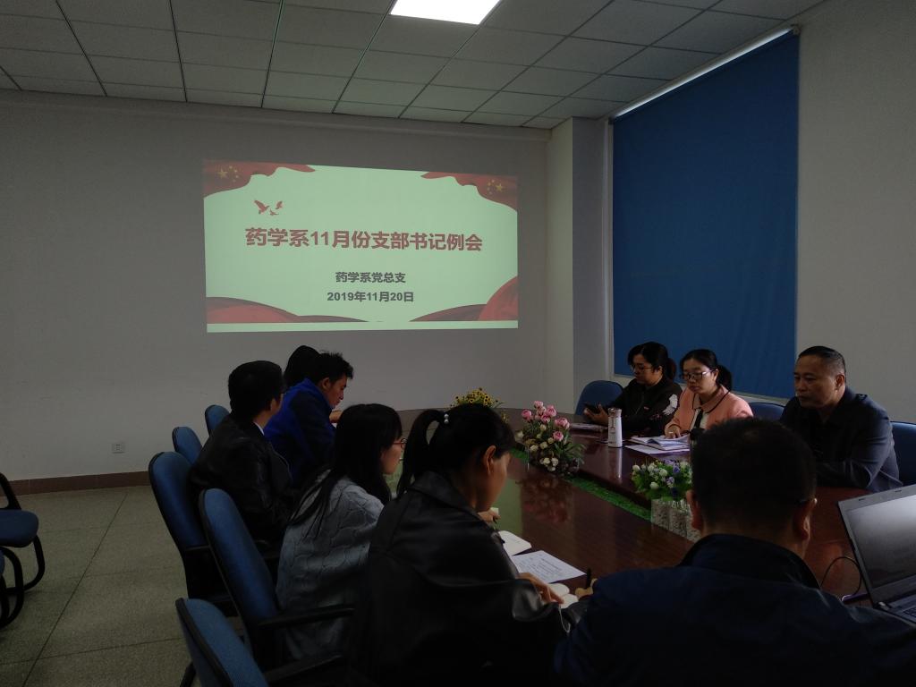 2019年11月20日,藥學(xué)系黨總支在會(huì)議室召開(kāi)11月份支部書(shū)記例會(huì),會(huì)議由藥學(xué)系黨總支書(shū)記鄭力宏同志主持。