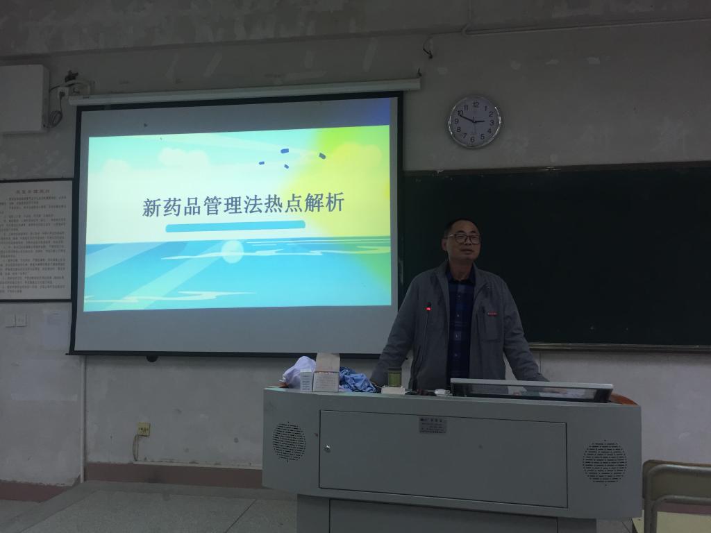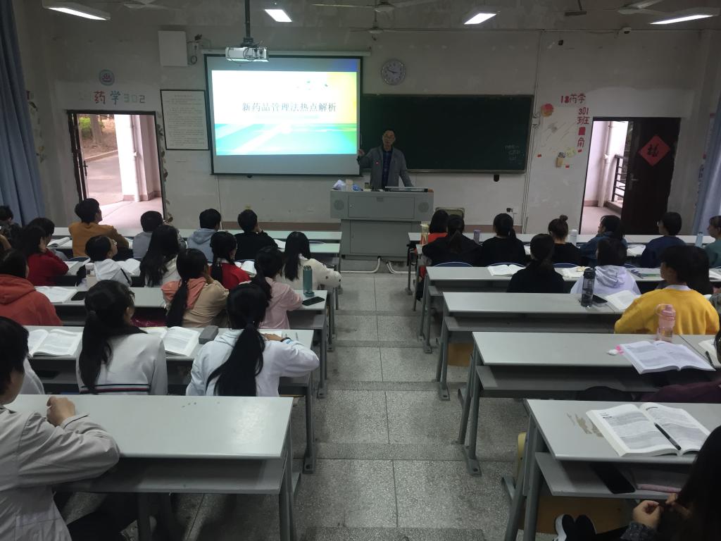 為加深同學(xué)們對(duì)當(dāng)前藥品市場(chǎng)新形勢(shì)的了解,進(jìn)一步掌握健康中國(guó)新理念,2019年11月22日,藥學(xué)系肖健副主任在藥一階為18藥學(xué)專(zhuān)業(yè)學(xué)生上主題為《新藥品管理法熱點(diǎn)解析》形勢(shì)與政策課。