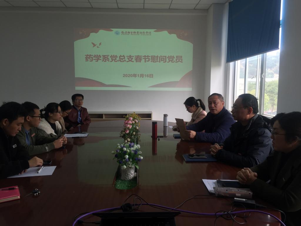 為深入學(xué)習(xí)貫徹習(xí)近平新時(shí)代中國特色社會(huì)主義思想、堅(jiān)持黨的群眾路線、鞏固“不忘初心、牢記使命”主題教育成效和貫徹落實(shí)省委十屆九次全會(huì)精神的重要舉措,2020年1月16日,藥學(xué)系黨總支在系部會(huì)議室開展春節(jié)慰問黨員活動(dòng)。