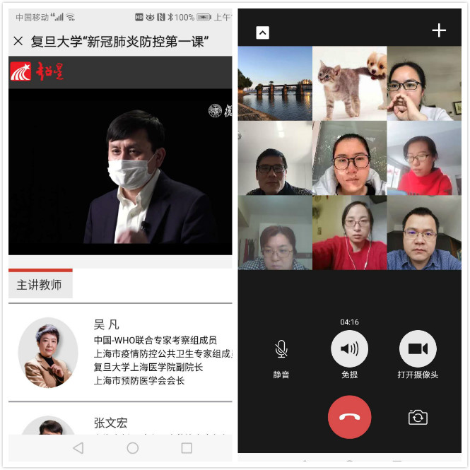 “硬核教授”張文宏與“疾控女俠”吳凡從臨床醫(yī)學(xué)、流行病學(xué)、社會治理等多角度介紹了新冠肺炎相關(guān)防控知識與政策,著重介紹了抗疫期間校園內(nèi)的防控措施?!靶鹿诜窝追揽氐谝徽n”結(jié)束后,支部書記鄧元榮立即組織支部全體成員通過微信視頻連線開展線上專題黨課,交流學(xué)習(xí)心得。鄧元榮同志以奮戰(zhàn)在一線、舍身忘我的優(yōu)秀醫(yī)務(wù)工作者為例,強調(diào)黨員的帶頭作用。