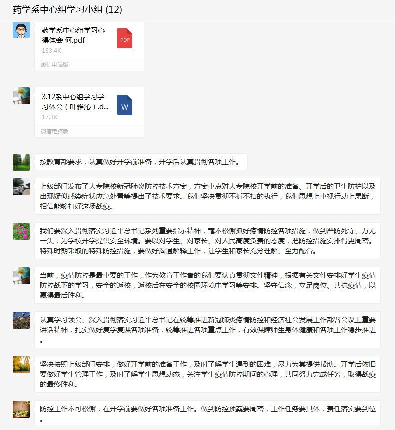 2020年3月12日,藥學(xué)系黨總支在微信群召開中心組學(xué)習(xí)(擴(kuò)大)會(huì)議,會(huì)議由藥學(xué)系黨總支書記鄭力宏主持。