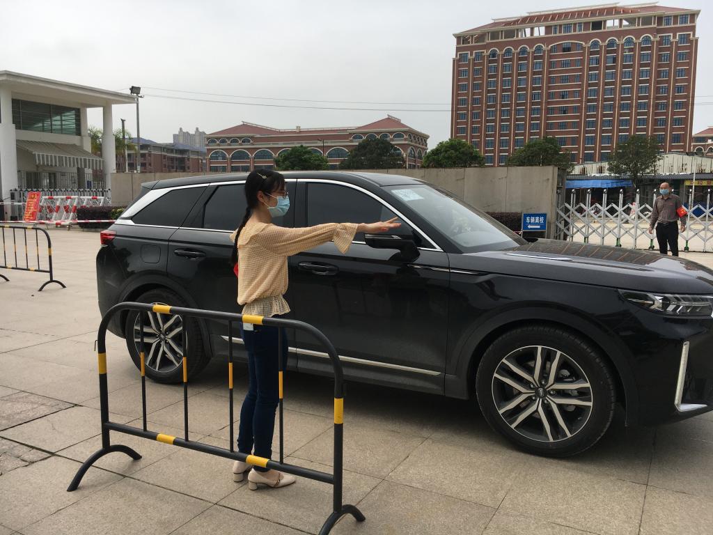 林偉玲老師引導(dǎo)車(chē)輛入校