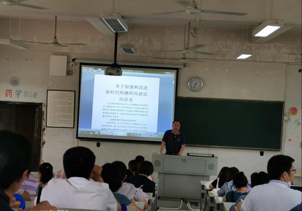 為進(jìn)一步加強(qiáng)師德師風(fēng)建設(shè),切實(shí)規(guī)范我系教職員工從教行為,2020年6月4日下午在藥學(xué)系第一階梯教室,我系組織全體教職員工共同學(xué)習(xí)了師德師風(fēng)建設(shè)方面的規(guī)章制度,學(xué)習(xí)會(huì)由鄭力宏書記主持。