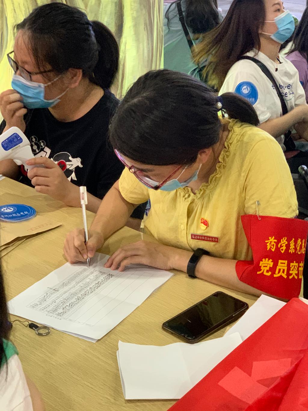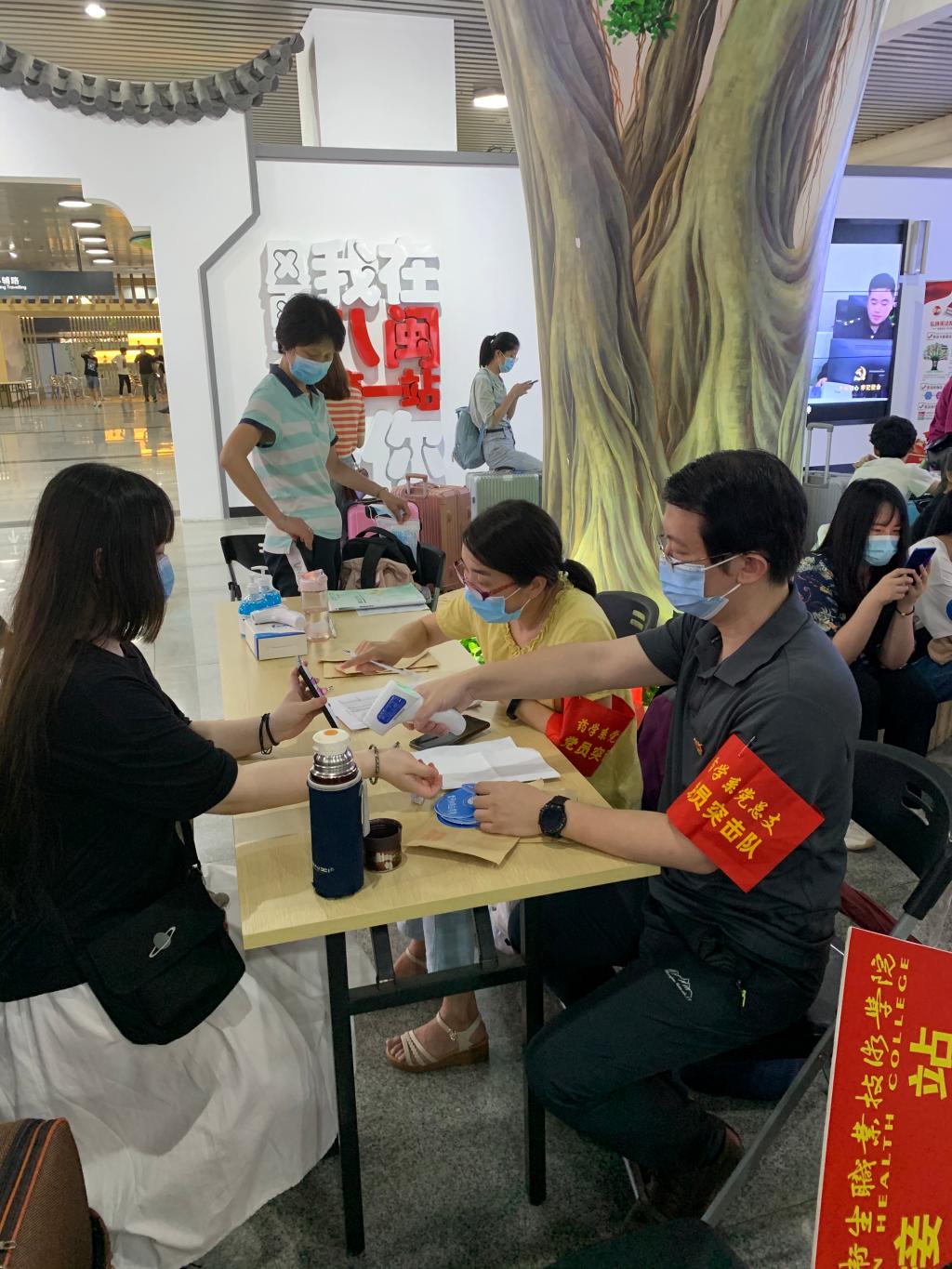 2020年6月7日,藥學(xué)系迎來疫情防控期間的首批返校復(fù)學(xué)學(xué)生。為確保學(xué)生順利返校,藥學(xué)系黨總支從黨員突擊隊(duì)中抽調(diào)11名優(yōu)秀黨員分赴福州火車站與福州火車南站,承擔(dān)接站與護(hù)送。登信息,測(cè)體溫,臂上鮮紅的袖章,胸前閃亮的徽章,和風(fēng)細(xì)雨卻又不失嚴(yán)謹(jǐn)?shù)膽B(tài)度,略顯疲憊卻又依然堅(jiān)毅的面龐,無不彰顯著藥學(xué)系黨員突擊隊(duì)的風(fēng)采與擔(dān)當(dāng)。