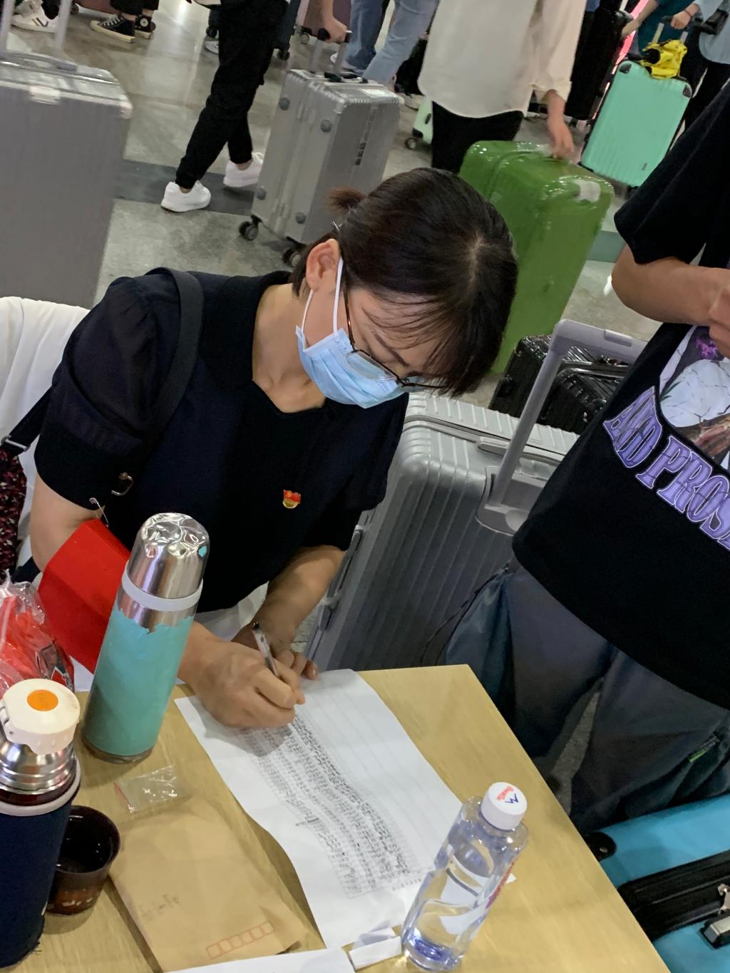 “早上8點(diǎn)鐘我就抵達(dá)火車北站,為保證測(cè)量體溫,填寫信息等具體工作能有一個(gè)好的環(huán)境,我自己厚著臉皮向火車站工作人員借了桌椅?!闭f話時(shí)饒雪娥同志的眼睛里閃現(xiàn)著堅(jiān)定的光芒。很難想象這樣一位身材嬌小的女教師,竟徒手將一張長(zhǎng)桌搬動(dòng)了近三十米。作為樣板支部一員的饒雪娥,在完成接站任務(wù)后又返回學(xué)校,對(duì)第二天崗前培訓(xùn)所涉及的實(shí)驗(yàn)材料再次進(jìn)行了檢查。她的一言一行,無不在詮釋著滿滿的責(zé)任。