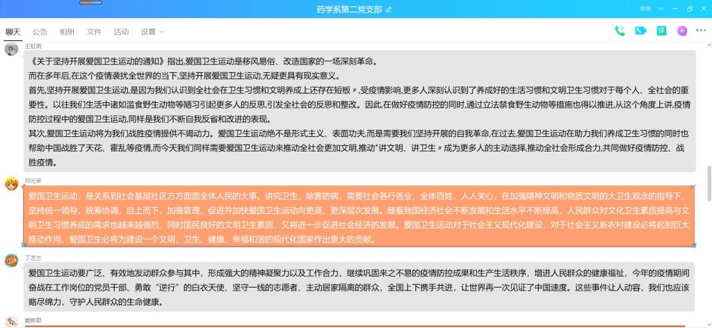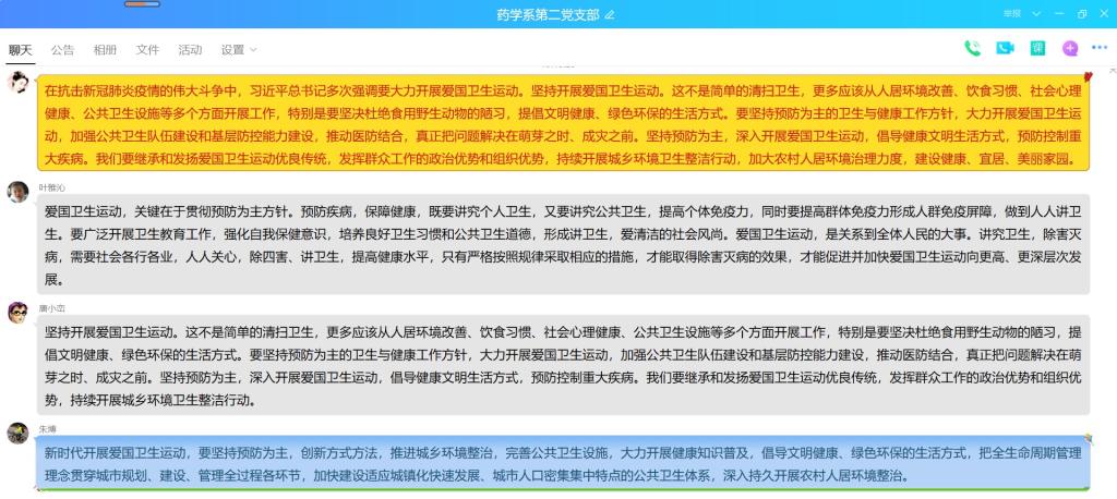 2020年6月16日,藥學(xué)系第二黨支部在QQ群開展愛國衛(wèi)生運動線上專題學(xué)習(xí)活動。本次專題學(xué)習(xí)由支部書記鄧元榮同志主持。