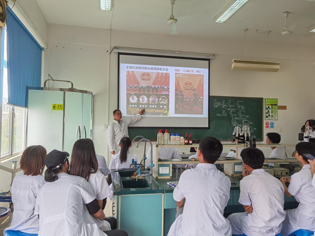 2020年10月12日,藥學(xué)系肖健副主任在系部408教室為19級學(xué)生講授以《同心戰(zhàn)“疫” 共筑中國力量》為題的形勢與政策課。