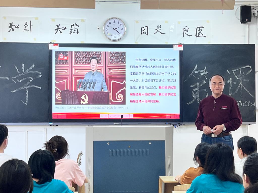 許能鋒校長由習(xí)近平總書記“七一”重要講話的論述引出主題,從共同富裕的歷史經(jīng)驗、主要內(nèi)容、重大意義等角度出發(fā),就共同富裕的科學(xué)內(nèi)涵、實踐路徑及未來征程與在場同學(xué)們進行深入探討。在講授中,許能鋒校長結(jié)合我校“十三五”取得的成效,以及對“十四五”規(guī)劃的展望,從我校醫(yī)學(xué)專業(yè)精準技術(shù)扶貧,實現(xiàn)“讓教育更有效阻斷貧困代際傳遞”;從建設(shè)資助工作規(guī)范化,確?!安蛔屢幻麑W(xué)生因家庭經(jīng)濟困難而失學(xué)”的生動闡述,充分展示我校與“共同富?!鼻Ыz萬縷的聯(lián)系。他勉勵閩衛(wèi)學(xué)子牢記習(xí)近平總書記囑托,不負韶華,不負時代,不負人民,為推動共同富裕貢獻青春力量。