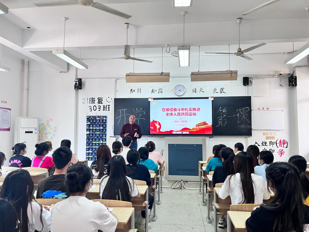 為深入學(xué)習(xí)貫徹習(xí)近平總書記關(guān)于“共同富?!毕盗兄匾撌?,激勵大學(xué)生扛起守好“紅色根脈”的時代責任,5月5日下午,校長許能鋒以“在持續(xù)奮斗中扎實推進全體人民共同富?!睘橹黝},為藥學(xué)院學(xué)生講授“開學(xué)第一課”。