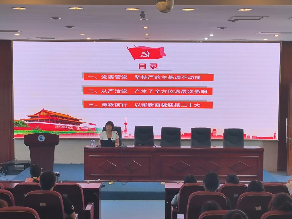 李美華首先以中國共產(chǎn)黨百年述職報告的視頻向大家展現(xiàn)了中國共產(chǎn)黨的發(fā)展史。同時,引出了今天討論學(xué)習(xí)的三個問題:如何永葆先進性和純潔性、永葆青春活力;如何永遠(yuǎn)得到人民擁護和支持;如何實現(xiàn)長期執(zhí)政。同學(xué)們帶著思索走進課堂,從“黨要管黨,堅持嚴(yán)的主基調(diào)不動搖”、“從嚴(yán)治黨,產(chǎn)生了全方位深層次影響”、“勇毅前行,以嶄新面貌迎接二十大”三個方面深入學(xué)習(xí)了黨內(nèi)管黨的規(guī)定,監(jiān)督以及目前取得的成績,展望了黨自我革命的新境界。最后,李美華講述了近一年來我校師生取得的成就,并激勵同學(xué)們努力學(xué)習(xí),再接再厲,再創(chuàng)輝煌。